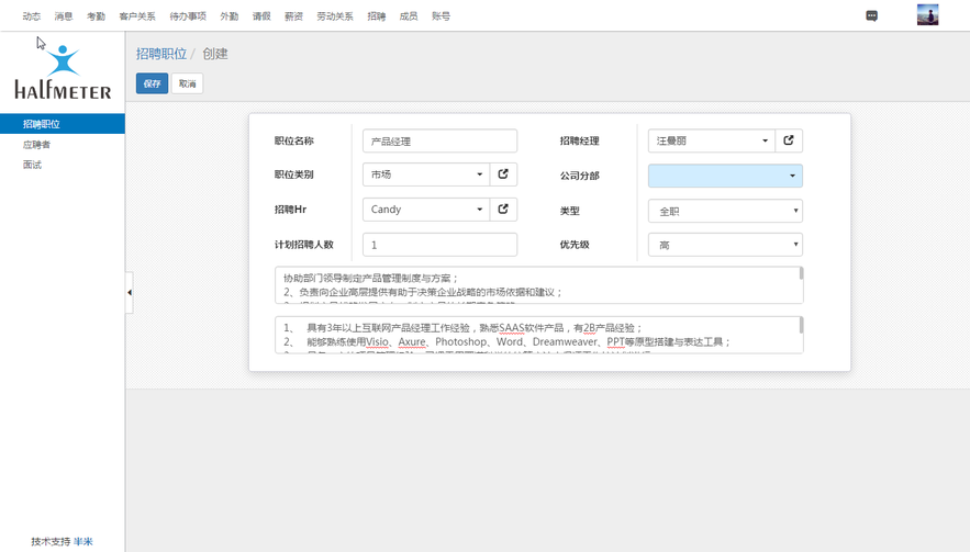 抛开纸质文件,让员工入职全面信息化,HR可以通过半米网页版记录和追踪员工从入职到离职的全过程信息,提供入职员工资料录入、劳动合同管理,离职管理记录。将劳动关系管理信息化,并且通过数据整合,可以对企业的人力状况、学历、离职率等做数据分析统计。